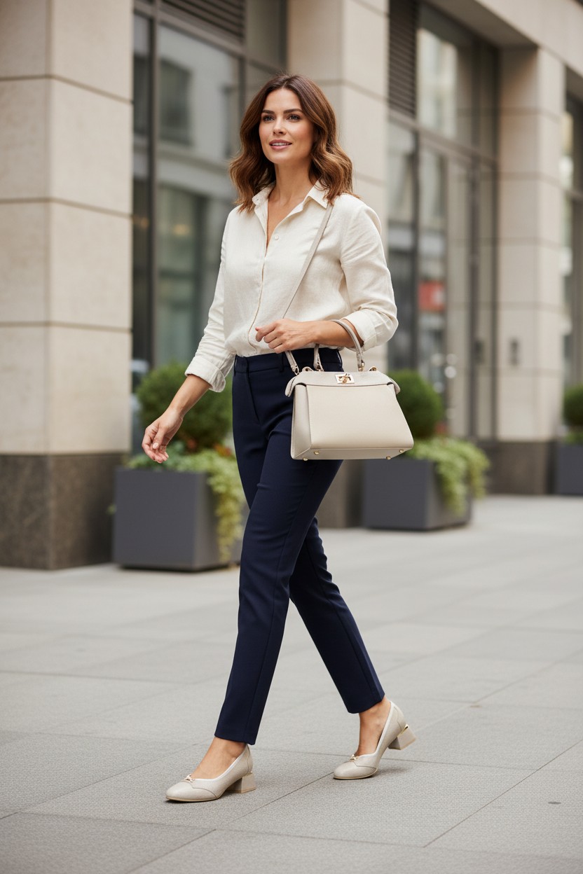 Bolejko Luna Beige świetnie wyglądają z wąskimi i prostymi spodniami, cygaretkami, białymi spodniami, a także z bardziej miękkimi, jasnymi zestawami. Bardzo dobrze łączą się z koszulą, lekką marynarką i elegancką torebką, ale równie naturalnie wypadają przy prostych sukienkach i spódnicach midi. To model, który pasuje do stylizacji biurowych, komunijnych, rodzinnych i codziennie eleganckich. Jasny odcień optycznie rozświetla całość i pięknie współgra z beżem, bielą, granatem, szarością i czernią.