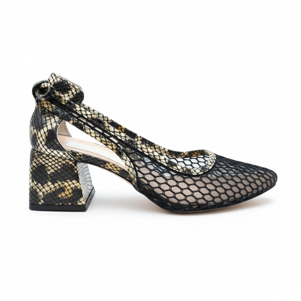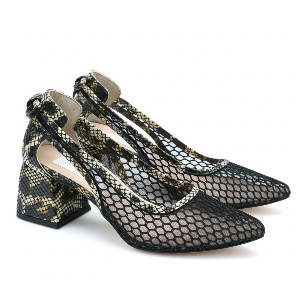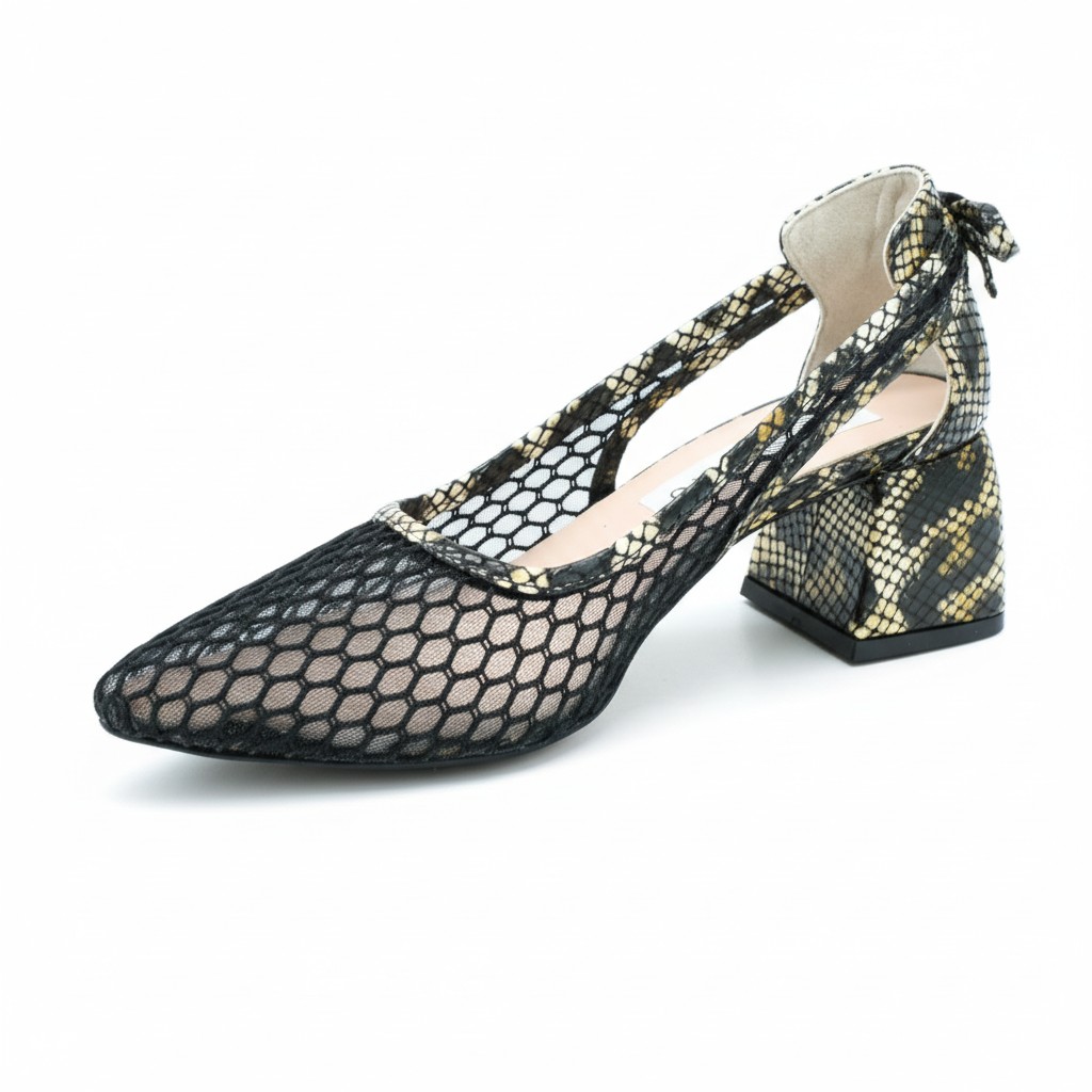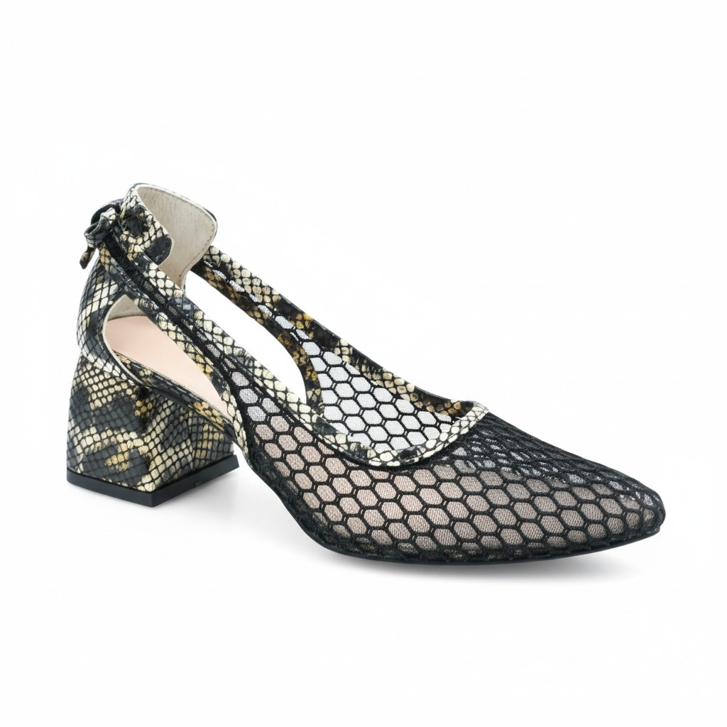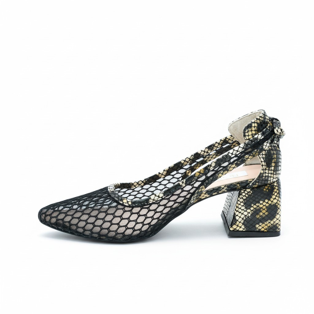 Bolejko Veil Black to model, który od razu przyciąga uwagę. Łączy w sobie lekkość siateczkowej cholewki z mocniejszym, bardziej wyrazistym detalem w print inspirowany lampartem. Dzięki temu but nie wygląda ciężko, ale zdecydowanie ma charakter. To czółenka dla kobiet, które lubią modę, ale nie chcą oczywistych, przewidywalnych fasonów.