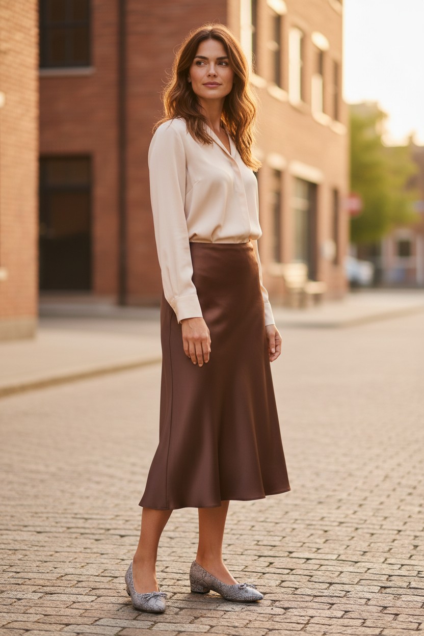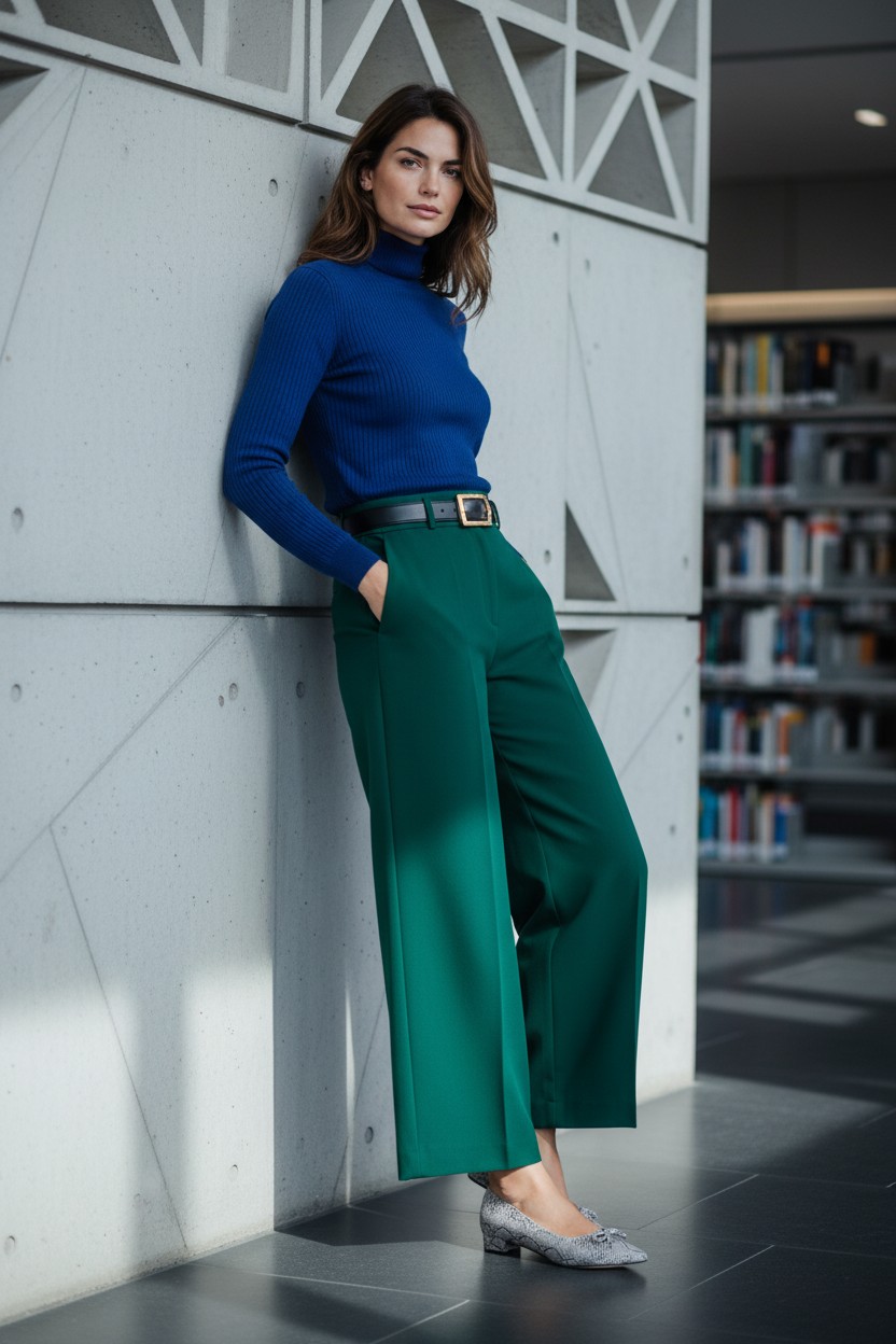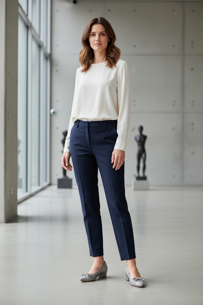 Choć w aktualnych trendach nadal mocno obecne są szerokie nogawki, ten model najlepiej prezentuje się w stylizacjach, które pokazują linię noska i obcasa. Dlatego szczególnie dobrze wygląda ze spódnicą midi, sukienką, cygaretkami, prostymi spodniami 7/8 oraz bardziej dopracowanymi, eleganckimi fasonami o krótszej długości. Kolorystycznie świetnie łączy się z granatem, szarością, chłodnym beżem, ecru, taupe, butelkową zielenią i czekoladowym brązem. Właśnie w takich zestawieniach print wygląda najbardziej szlachetnie i nie traci swojego uroku.